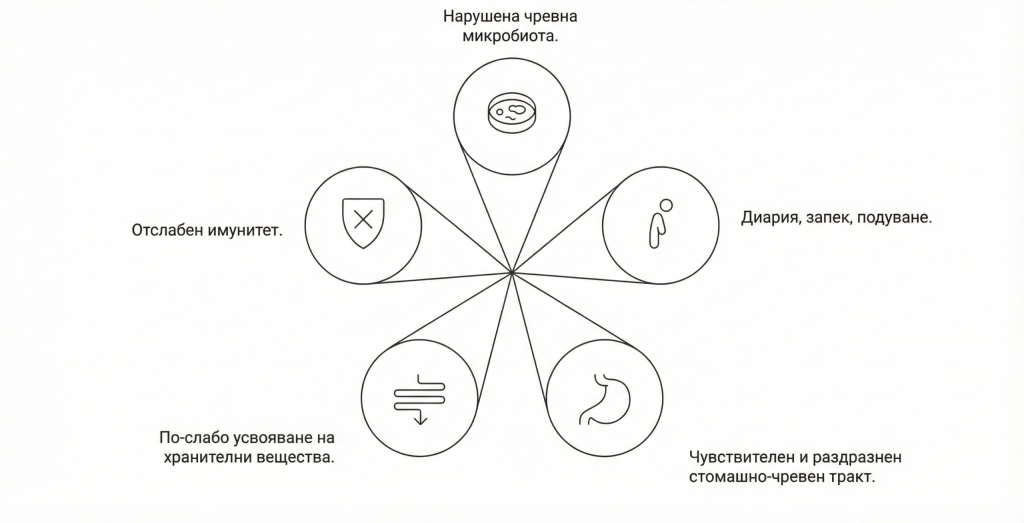 Постбиотиците подпомагат възстановяването на чревния баланс, без да дразнят чувствителния стомашно-чревен тракт.