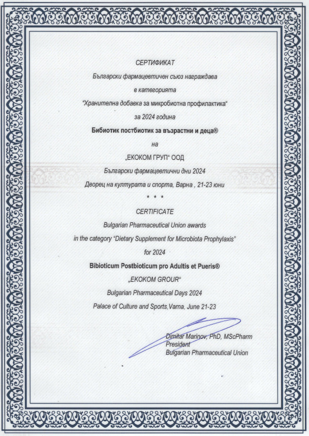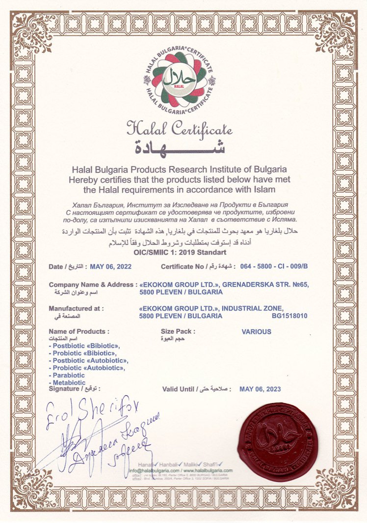 Разработване и усвояване на технология за производство на постбиотик под търговска марка „bibiotic“. ПОСТБИОТИКЪТ, наричан още парабиотик или метабиотик, се отнася към нов клас пробиотични продукти – по-полезни и много по-ефективни от пребиотиците, пробиотиците и синбиотиците. Постбиотиците, притежават всички предимства на пробиотиците, но нито един от недостатъците им. Напротив, те действат по-бързо, по-директно и по-ефективно в полза на здравето.
