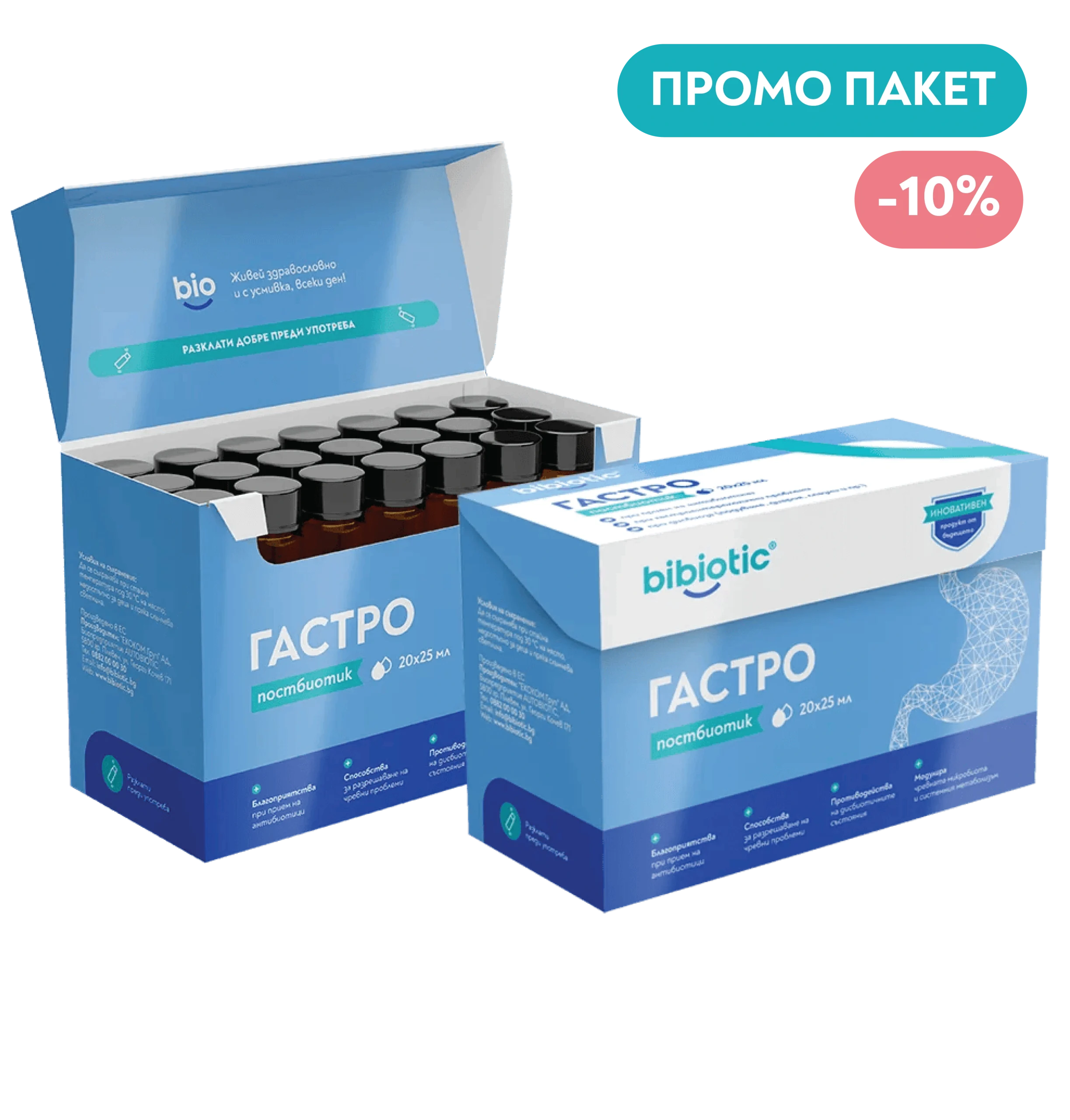 Bibiotic® Гастро е специално разработена хранителна добавка – постбиотик, създадена да поддържа здравето на храносмилателната система и да възстановява естествения баланс на чревната микрофлора. Продуктът възстановява чревния баланс, като подпомага полезните бактерии и нормализира микрофлората, поддържа здрава чревна бариера като укрепва естествените защитни механизми на организма, и подпомага храносмилателния комфорт – намалява усещането за тежест, подуване, газове и стомашен дискомфорт.